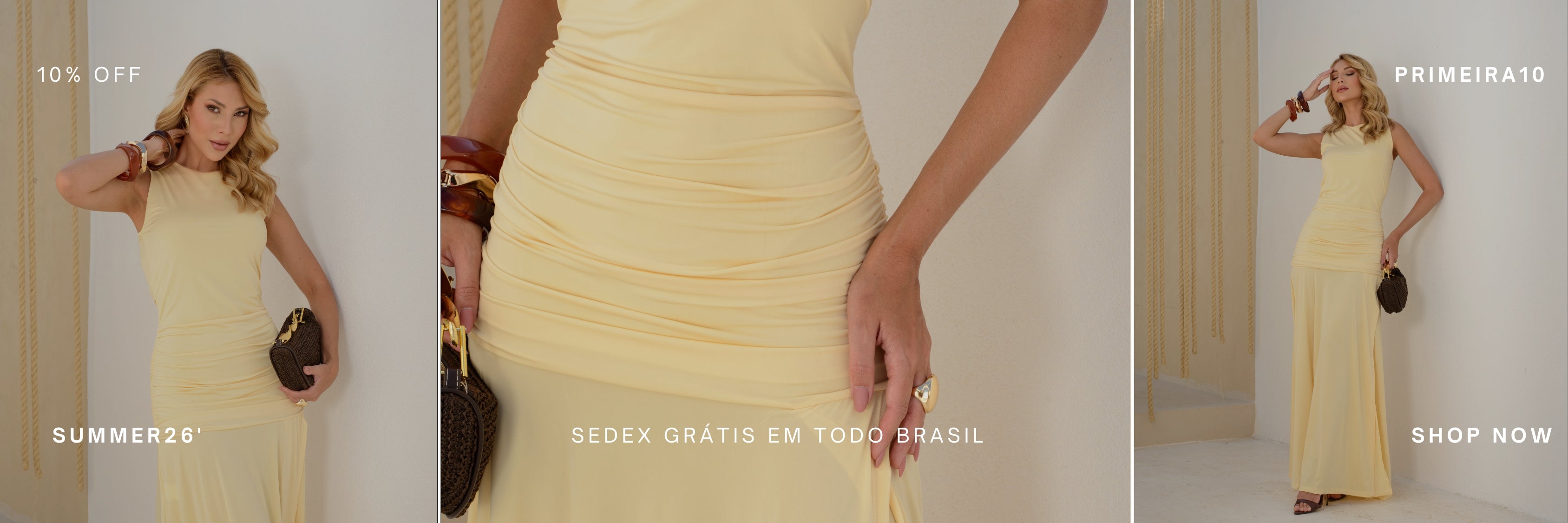 Uma coleção onde sofisticação e atemporalidade se encontram celebrando a moda que atravessa o tempo com leveza e presença.